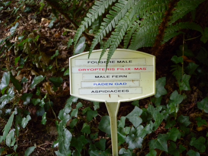 Vue du panneau de présentation trilingue de la fougère mâle 'Raden gad'Immatriculation