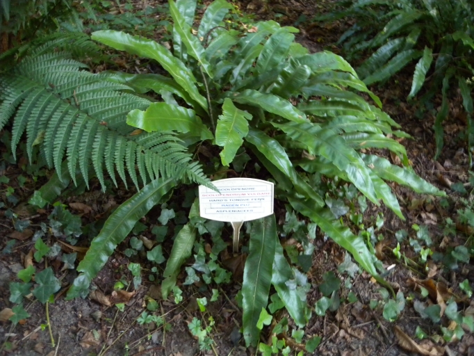 Vue de la fougère Scolopendre et du panneau d'identification associéImmatriculation