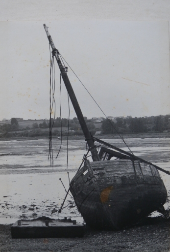 Vue de l'épave d'un ancien bateau de travail à Coz Castel, rive droite du Trieux, vers 1980Immatriculation
