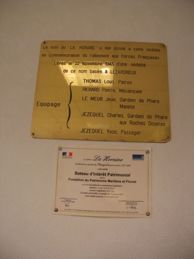 Plaque de 'La Horaine', bateau déclaré d'intérêt patrimonial en 2008, sous le n° 333226Immatriculation