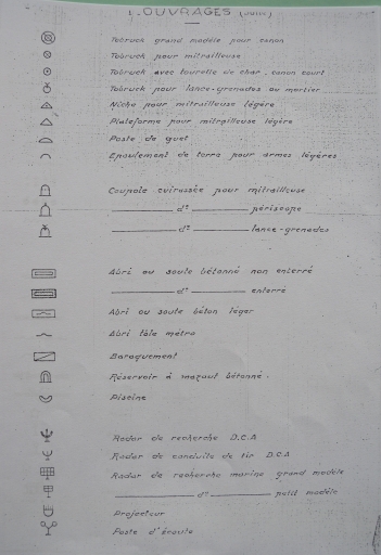 Légendes des cartes et plans du Mur de l'Atlantique, dont le plan de la fig. n°5 : ouvrages de fortification (Service Historique de la Défense)Immatriculation