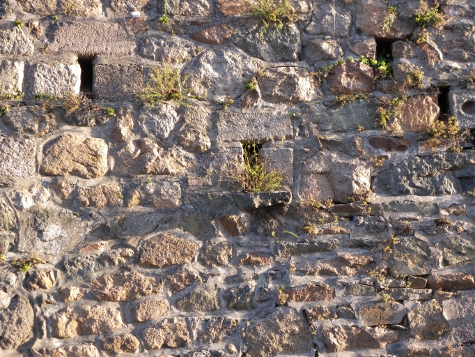 Vue de détail des moellons de pierres différentes constituant la maçonnerie du murImmatriculation