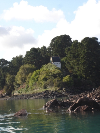 Vue du fanal dans son environnement, sur un côteau rocheux, à l'entrée de l'anse du Moulin MerImmatriculation