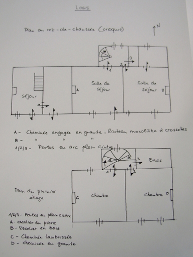 Plan schématique du logis, rez-de-chaussée et de l'étage (pré-inventaire, 1977)Immatriculation