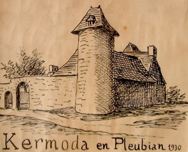 Kermoda, vue générale du manoir, croquis à la plume d'Henri Frotier de la Messelière, 1930 (AD 22)Immatriculation