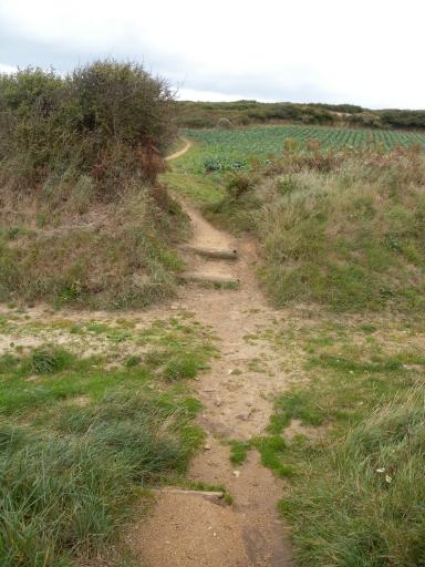 Vue du sentier de la côte Ouest qui circule entre les parcelles cultivéesImmatriculation