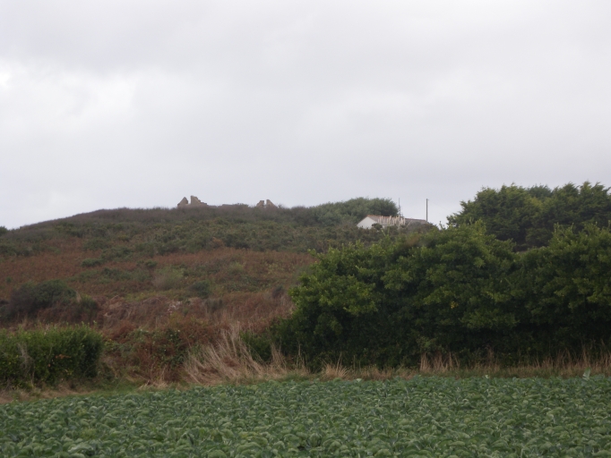 Vue de l'ancien sémaphore et d'une habitation isolé sur la butte de Creac'h Maout, avec en premier plan les landes et les parcelles cultivéesImmatriculation