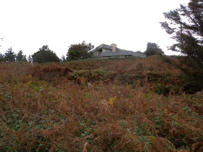 Vue dune habitation contemporaine, située dans un replat de la falaise sous le sémaphoreImmatriculation