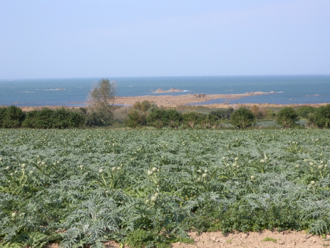 Vue des cultures de plein champ derrière le cordon de galetsImmatriculation