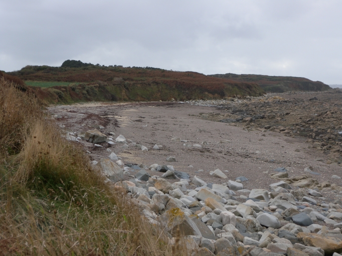 Vue de la micro falaise de Creac'h Goëlet couverte de landes et de terrains cultivésImmatriculation
