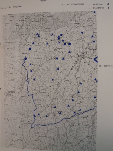 Extrait du cadastre de la commune de Pleubian de 1969, avec les maisons et fermes repérées et sélectionnées en 1977 (Mairie de Pleubian, SRI)Immatriculation