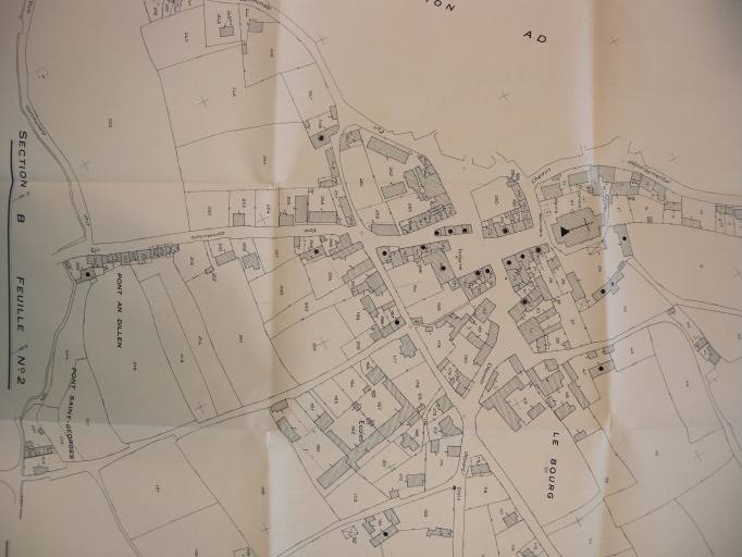 Extrait du cadastre du bourg de Pleubian de 1969, avec les édifice repérés en 1977 (Mairie de Pleubian, SRI)Immatriculation
