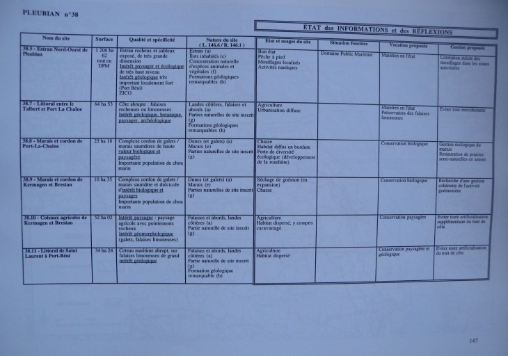 Etat des informations et des réflexions sur les espaces littoraux remarquables de la commune de Pleubian (DIREN Bretagne, 1998)Immatriculation
