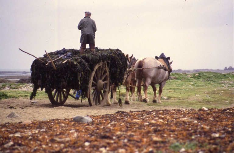 Attelages goémoniers au Sillon de Talbert et aire de séchage vers 1990Immatriculation