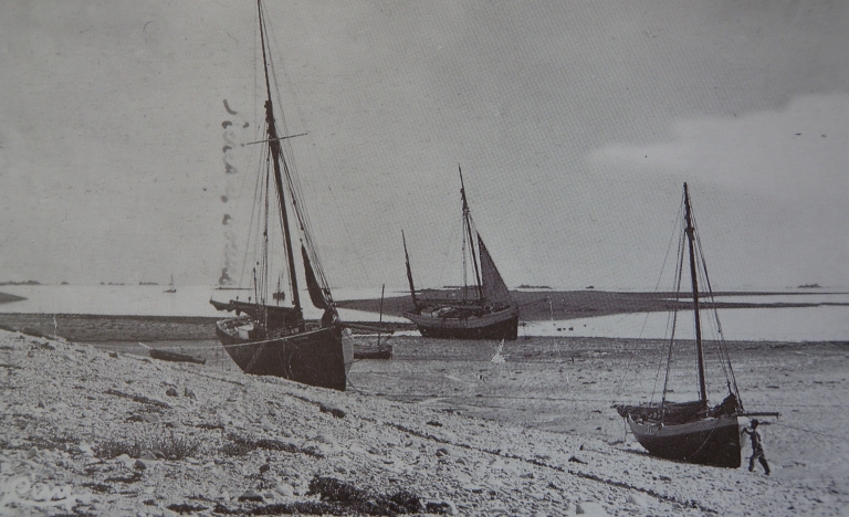 Le sloop borneur 'Frère et Soeur' à Fanch Guillou et le tape-cul 'Servanik' au port du Sillon, 1er quart 20ème siècle (carte postale, collection particulière)Immatriculation