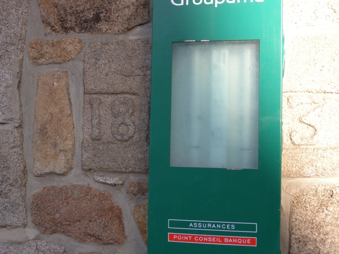 Date cachée par un panneau publicitaire sur une maison traditionnelle du bourg (Début 19ème siècle)Immatriculation