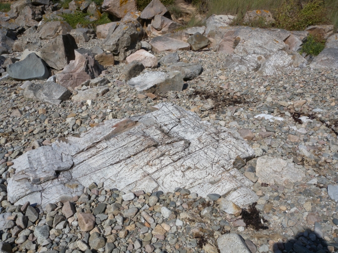 Vue du site géologique remarquable de Port-Béni : filon affleurant de gneissImmatriculation