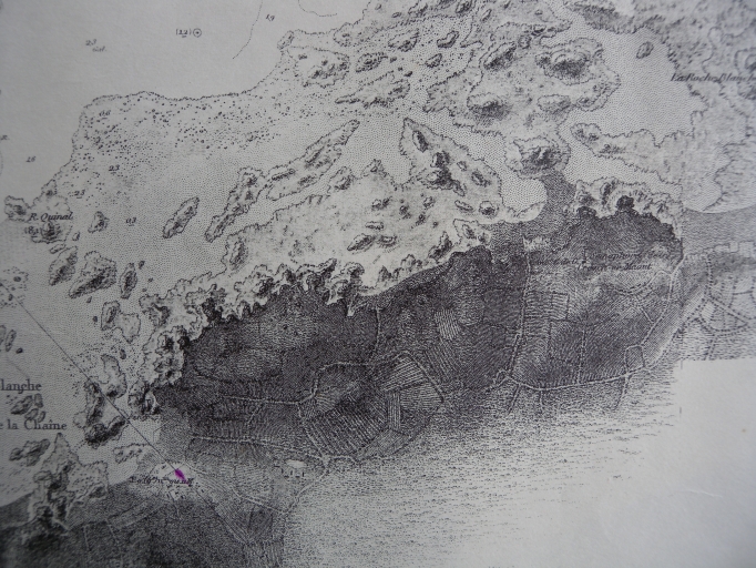 Extrait de la carte marine levée en 1837 : la côte de Creac'h Maout (EPSHOM)Immatriculation
