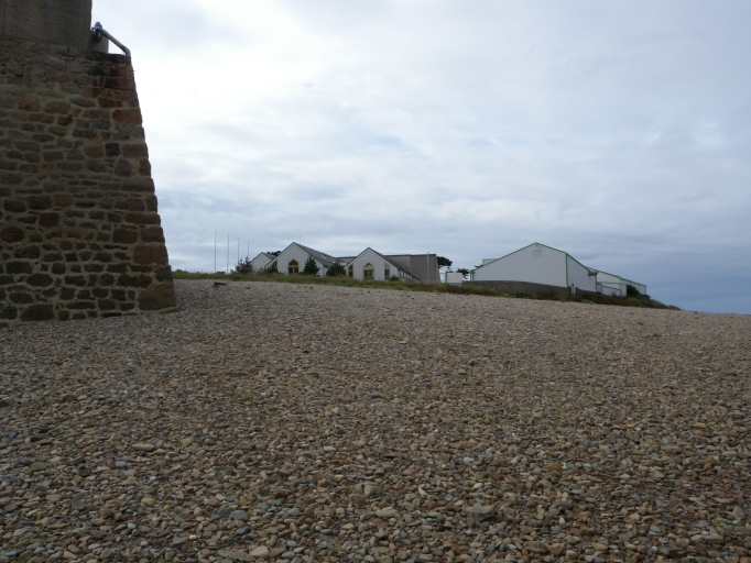 Vue depuis la base Nord de la jetée : remarquer le cordon de galetsImmatriculation