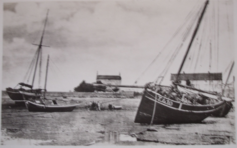 Sloops de pêche et gabarres échoués dans la petite grève de Penn Lann, 1er quart 20ème siècle (carte postale, collection particulière)Immatriculation
