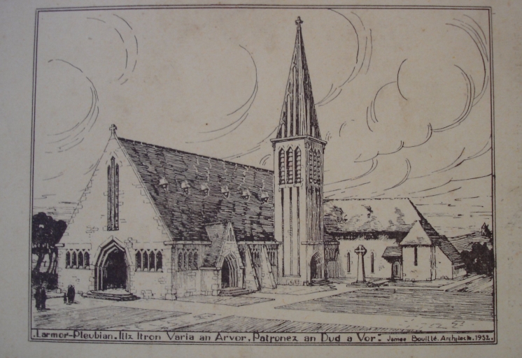 Dessin de l'église de l'Armor, par l'architecte James Bouillé, 1932 (carte postale, collection particulière)Immatriculation