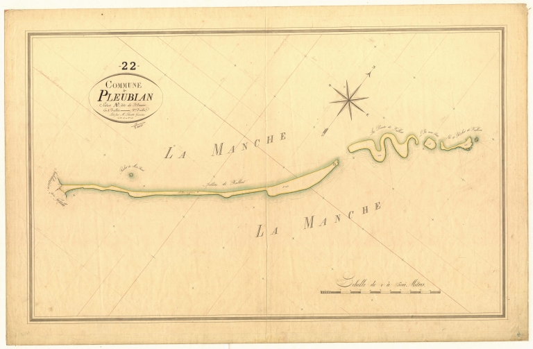 Extrait du cadastre de 1829 : le Sillon de Talbert, avec le rocher de Talbert, la Pointe de Talbert et l'Île aux Rats (AD 22)Immatriculation