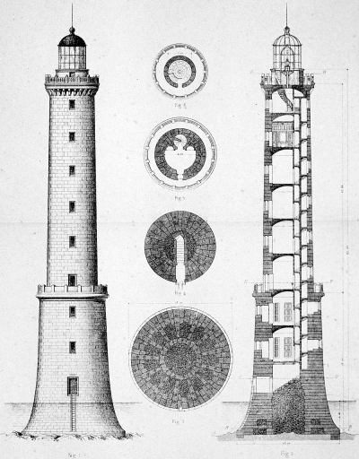 Plan du phare des Héaux de Bréhat et descriptif des aménagements intérieurs, 1834 (Léonce Renaud, ENPC)Immatriculation