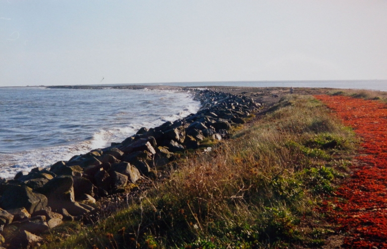 Vue des enrochements et des zones de séchage du goémon, vers 1990 (collection particulière)Immatriculation
