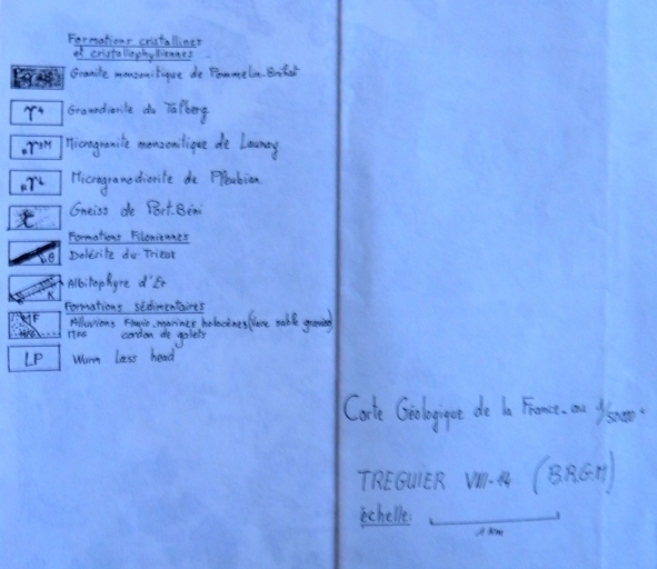 Légendes de la carte géologique au 1/50 000° du Sillon de Talbert et des espaces littoraux remarquables de la commune, BRGM, TG, VIII-14 (CPIE de Lézardrieux et Université du Littoral, Calais, avril-mai 1994, fig. 5)Immatriculation