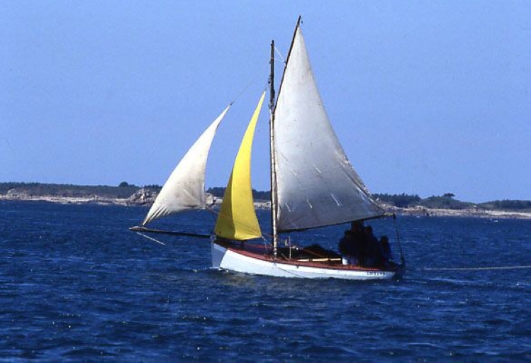 Vue du 'Goéland' avec toute sa voilure devant l'Île Maudez, en navigation avec l'Ecole de mer du Trégor, 1992 (Marc Rapilliard)Immatriculation