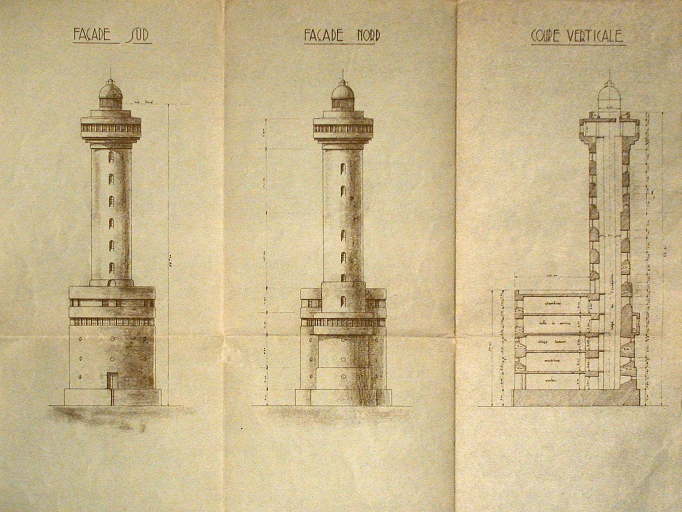 Plan : projet de Georges Tourry pour la reconstruction du phare des Héaux de Bréhat, mai 1945 (ENPC)Immatriculation
