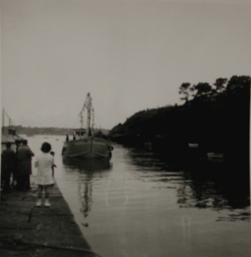 Vue du bateau de transport 'la Mylène' arrivant au Port-Clos, 3ème quart 20ème siècle (collection particulière)Immatriculation