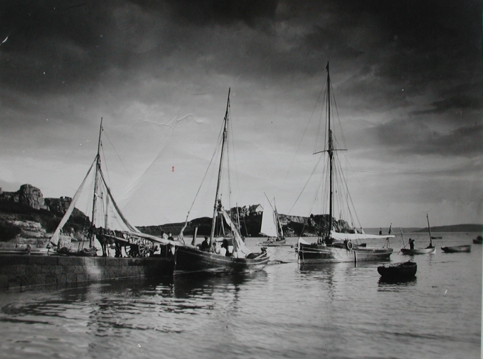 Voiliers de passage à la 1ère cale du Port-Clos, 1er quart 20ème siècle : bocks et sloops avec mat de flèche (carte postale, collection particulière)Immatriculation