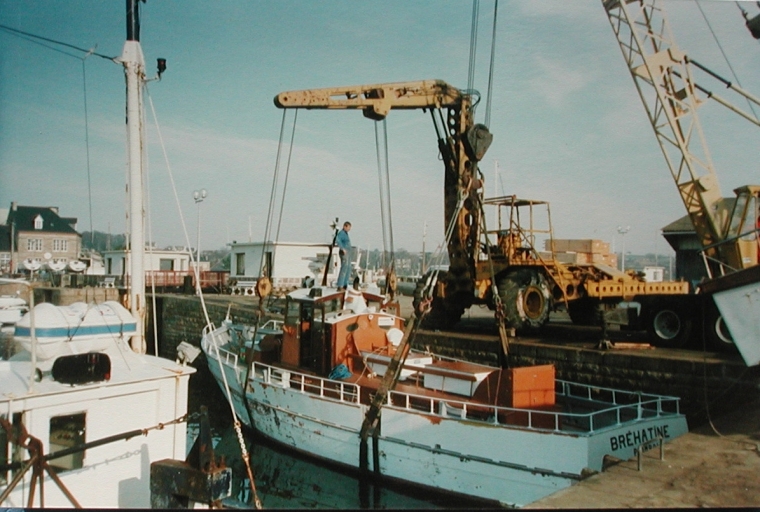Levage de la vedette 'Bréhatine à Paimpol, 4ème quart 20ème siècle (collection particulière)Immatriculation