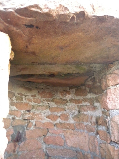 Vue de la maçonnerie intérieure du puits du Paon : moellons de granite, ciment et pierre de charpenteImmatriculation