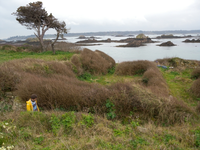 Vue de l'emplacement des jardins entourés d'un enclos, sur la côte Sud de l'îleImmatriculation