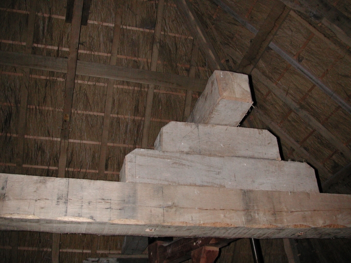 Vue des pièces en chêne supportant la charpenteImmatriculation