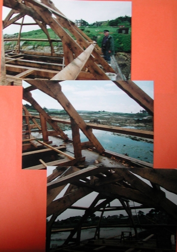 Vue des différentes étapes de mise en oeuvre de la charpente par l'entreprise Gilles Morio, 1994 (collection particulière, Jean Peillet)Immatriculation