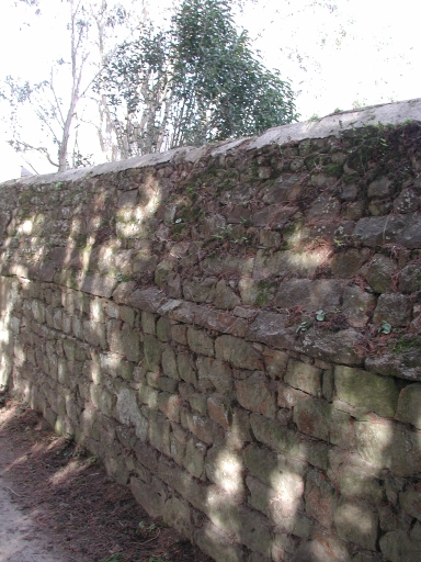 Vue d'un beau mur en moellons, le long d'un sentier communalImmatriculation