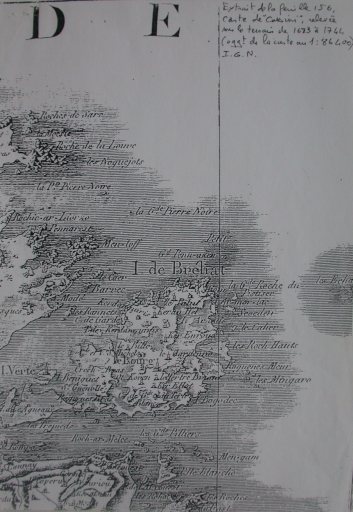 Extrait de la carte de l'Île de Bréhat par Cassini, relevée entre 1693 et 1744 (IGN, collection particulière)Immatriculation