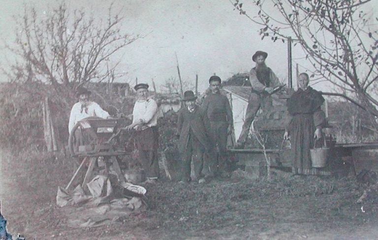 La fabrication du cidre en 1909 : parmi les personnages, le vieux Tréboouta (carte postale, collection particulière)Immatriculation