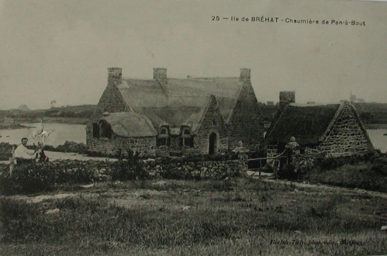 La chaumière de 'Pen ar Bout' dans la Corderie, avec son toit en chaume, dite du sculpteur Wermare, 1er quart 20ème siècle (carte postale, collection particulière)Immatriculation