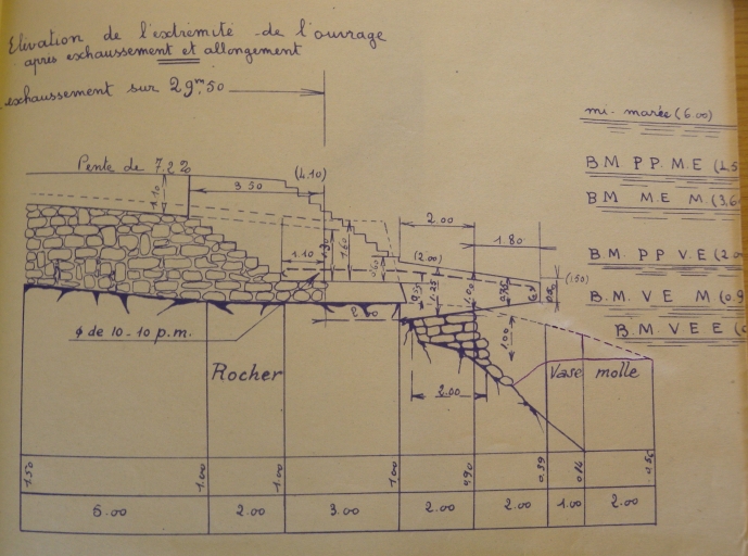 Plan : projet d'élévation et d'allongement de la cale du Goaréva en 1936 (AD 22)Immatriculation