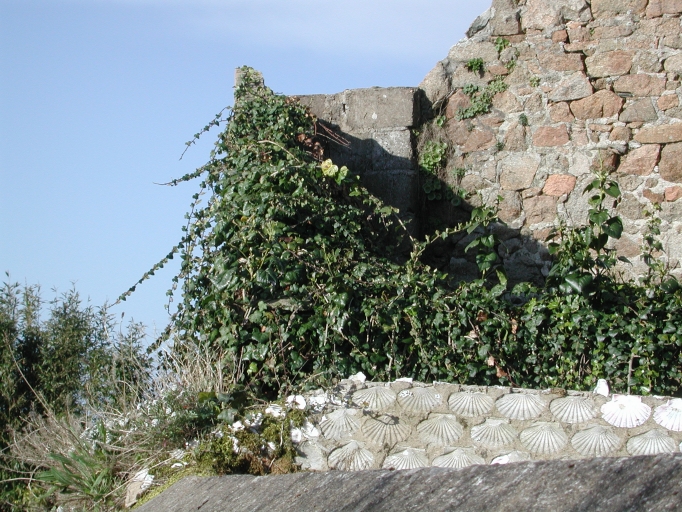 Vue de détail de la couverture d'une ancienne crêche : coquilles St-JacquesImmatriculation
