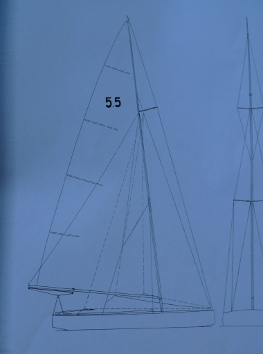 Dessin : plan de voilure d'un monotype de plaisance, du type 'Carantec' (collection particulière)Immatriculation