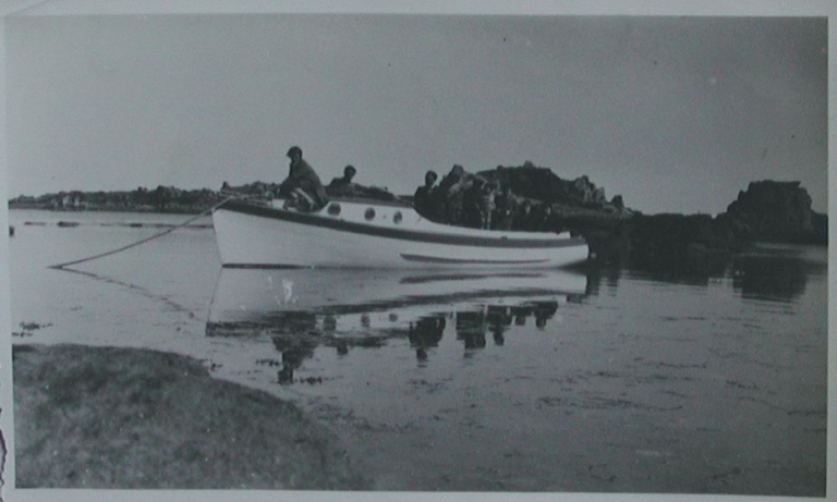 Vue du canot à moteur de Lucien Le Masson : 'Korrigane', 2ème quart 20ème siècle (collection particulière)Immatriculation
