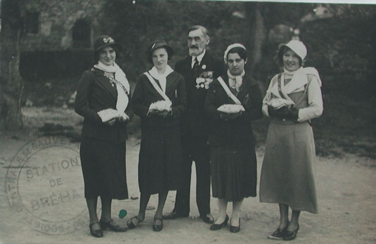 Lucien Le Masson, maire de Bréhat et président de la Société de sauvetage des naufragés, avec ses 'quetteuses (Simone Evenou, Adèle Quéré, Barat), 2ème quart 20ème siècle (collection particulière)Immatriculation