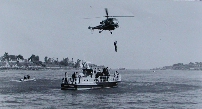 Exercices avec la vedette 'Jeanne-Pierre' et un hélicoptère, 4ème quart 20ème siècle (collection particulière)Immatriculation