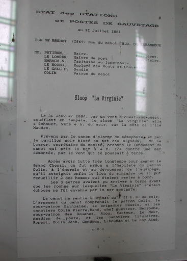 Rapport manuscrit du naufrage du sloop 'Virginie' le 31 juillet 1881 (collection particulière, chapelle Notre-Dame-de-Keranroux)Immatriculation