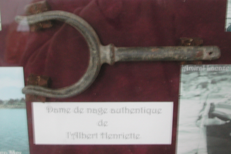 Vue de la dame de nage du canot à avions 'Albert-Henriette', dans la chapelle Notre-Dame-de-Keranroux (27 cm de hauteur et 8 cm de diamètre)Immatriculation